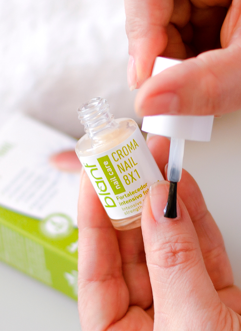 Por ser uma base de nitrocelulose, o ideal é removê-la semanalmente com o Removedor de Esmaltes 4X1 ou Removedor de Esmalte Vegano 8X1 da Blant e aplicá-la novamente nas unhas, até o fim do produto.