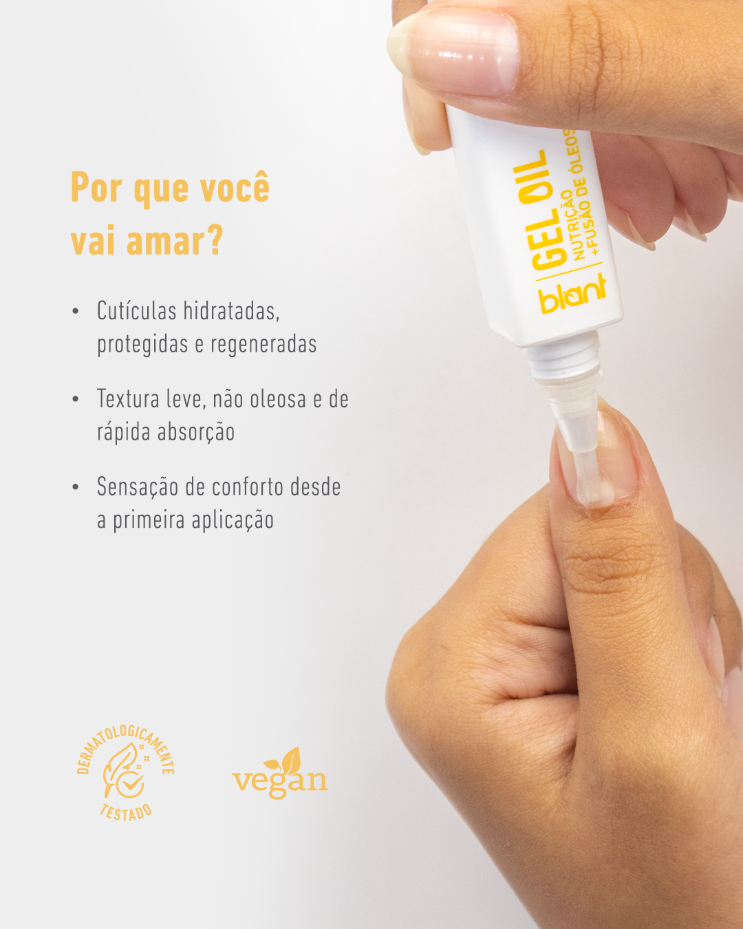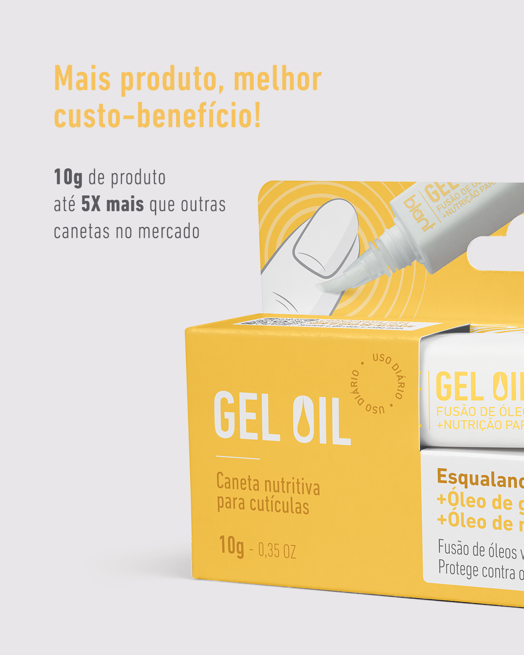 Serve para nutrir intensamente as cutículas, prevenir o ressecamento e melhorar a aparência da região sem necessidade de alicate. - Quais os principais benefícios do Gel Oil?