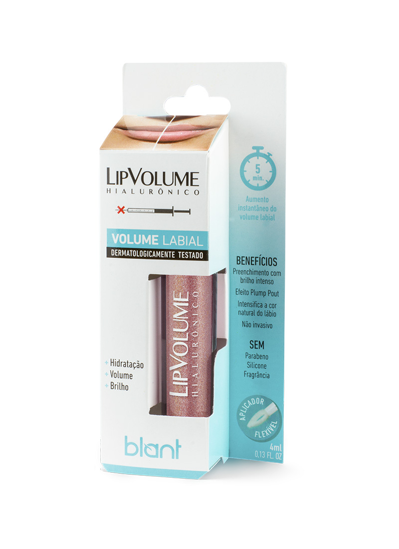 Além do efeito de preenchimento, volume e brilho nos lábios, o LipVolume contém ácido hialurônico que é a substância responsável por preencher os espaços entre as células, garantindo o volume e dando mais forma ao contorno dos lábios.