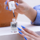 Primeiramente, lave e seque bem as unhas. Em seguida, aplique uma fina camada de qualquer base fortalecedora da Blant sobre as unhas.